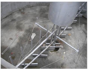 工作原理:SZX 型中心傳動濃縮機采用蝸輪蝸桿(<φ8m 可采用擺線針輪減速機,>φ14m 采用中心回轉(zhuǎn)齒輪)傳動,刮泥壁上設(shè)計有縱向攪拌柵條,刮臂旋轉(zhuǎn)時柵條起攪拌作用,加速活性污泥的下沉,刮泥板外緣線速度≤3m/min。整個刮泥機構(gòu)可以手動提升400mm (用擺線針輪減速機不可以提升)。